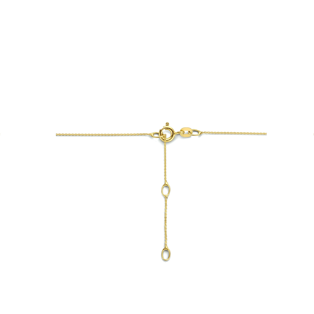 14k Geelgouden collier uitgevoerd met een hanger in de vorm van een poolster met daarin een schitterende zirkonia. Het collier heeft draaglengtes van 41, 43 en 45cm. De hanger heeft een afmeting van 11x9mm.