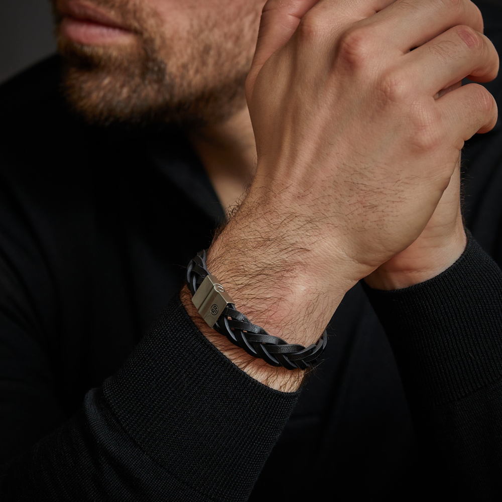 Rebel en Rose armband, Full Metal Braided Black Matt 15mm L