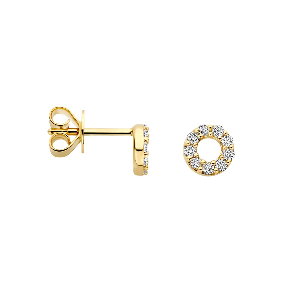 gouden Blush LG oorstekers, open rondje+ 2x0.09ct LG diamant