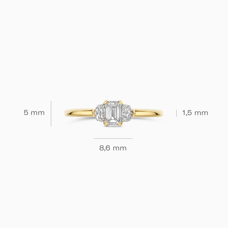 gouden Blush ring, LG 0.40ct baguette+2x0.10ct mt56