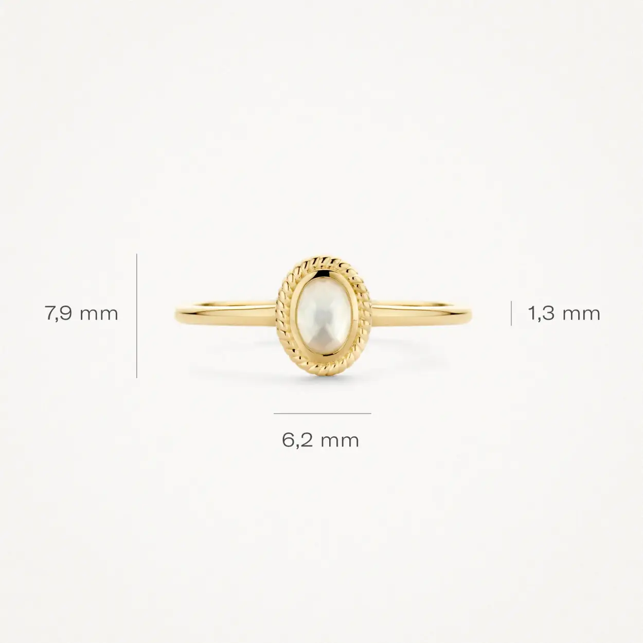 gouden Blush ring, ovaal quartz/parelmoer mt54