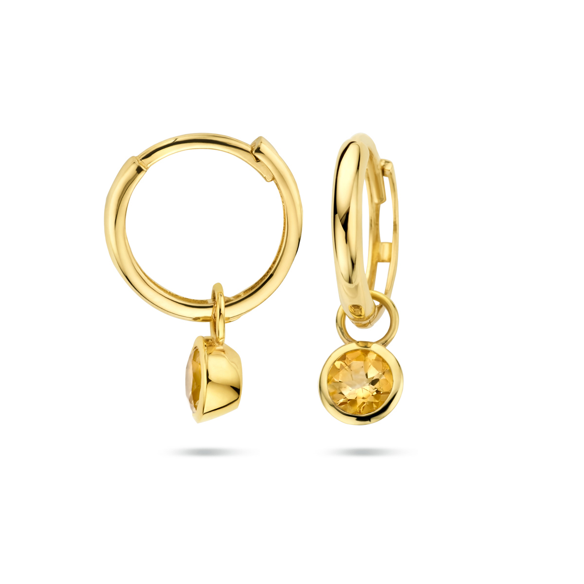 gouden oorringen met hanger citrien 0.98ct (2x 0.49ct)