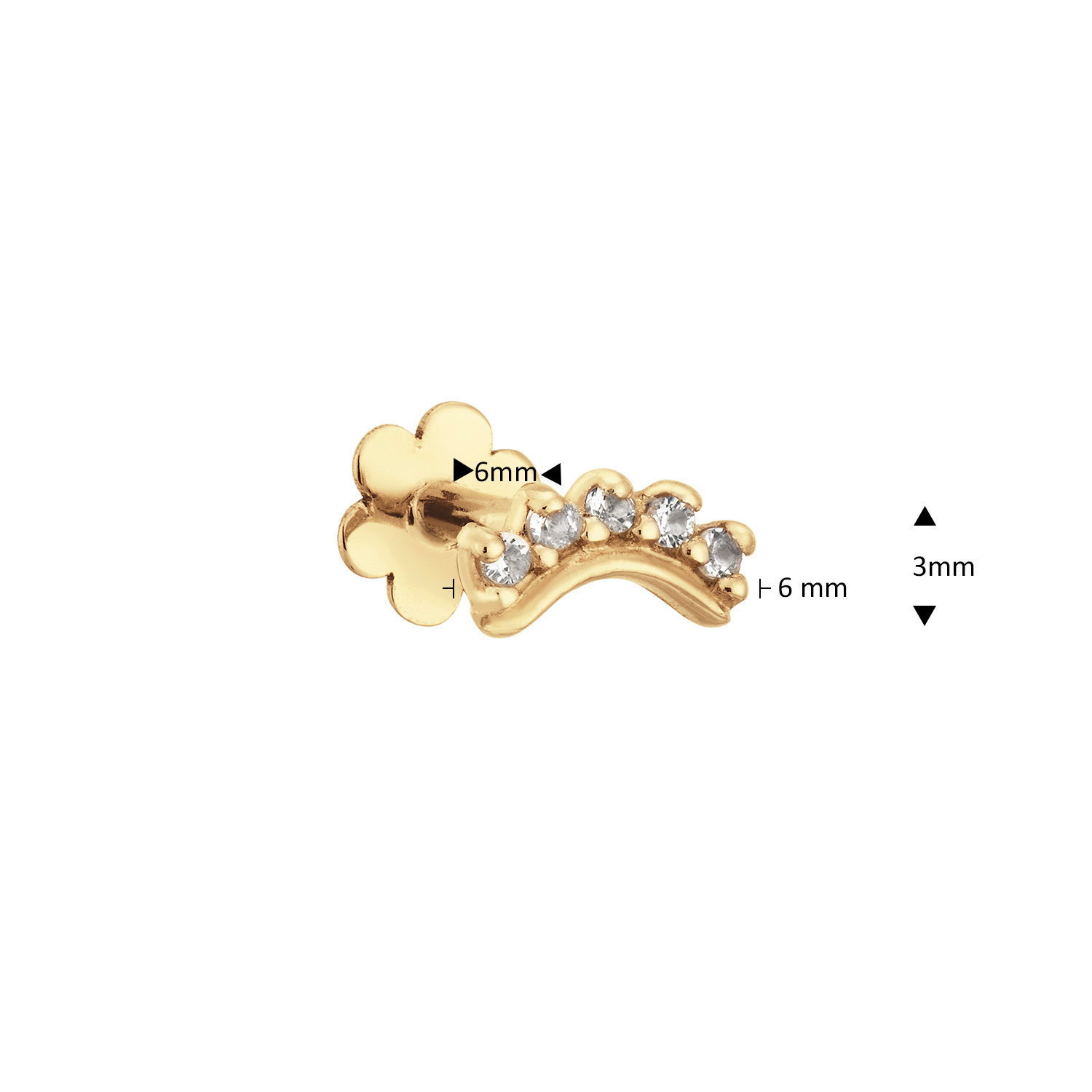 gouden piercing, Curve White Topaz