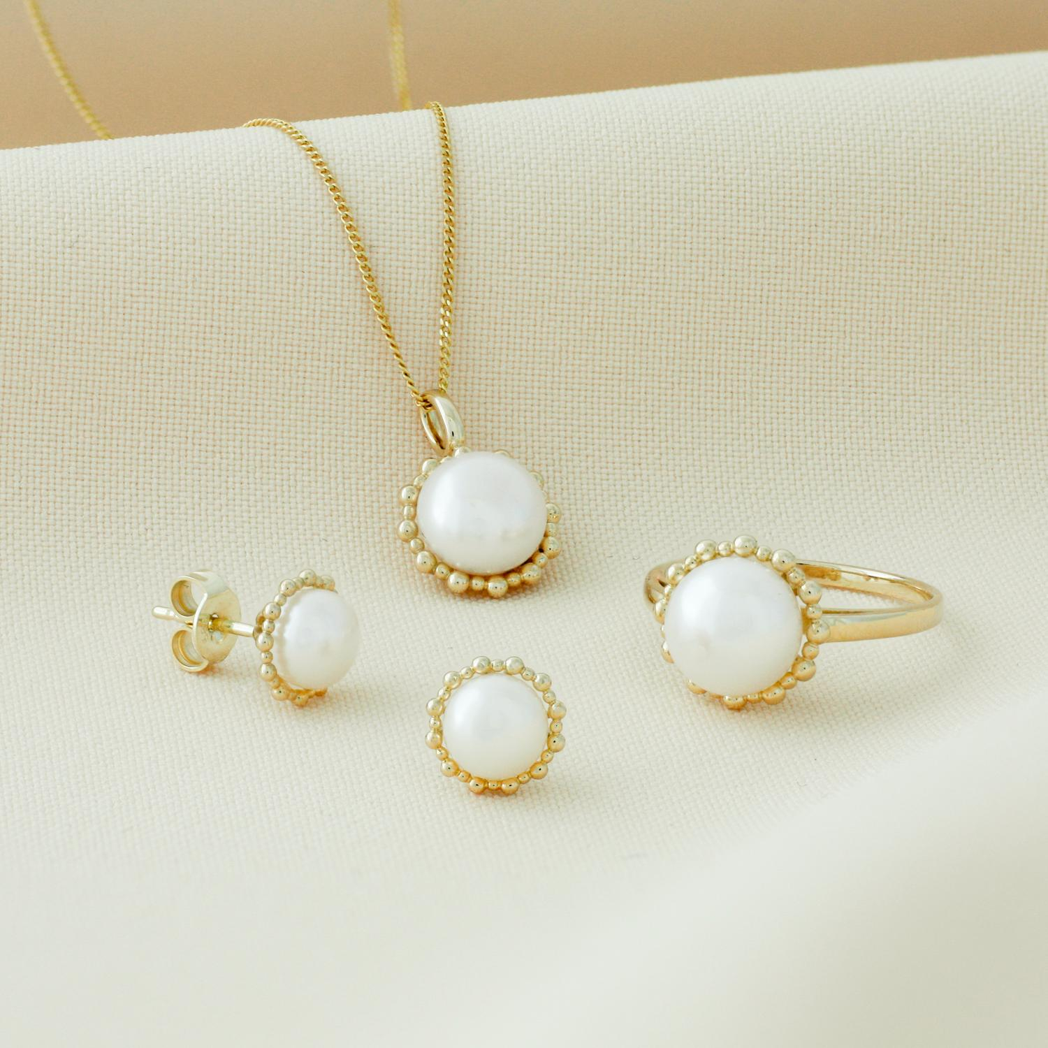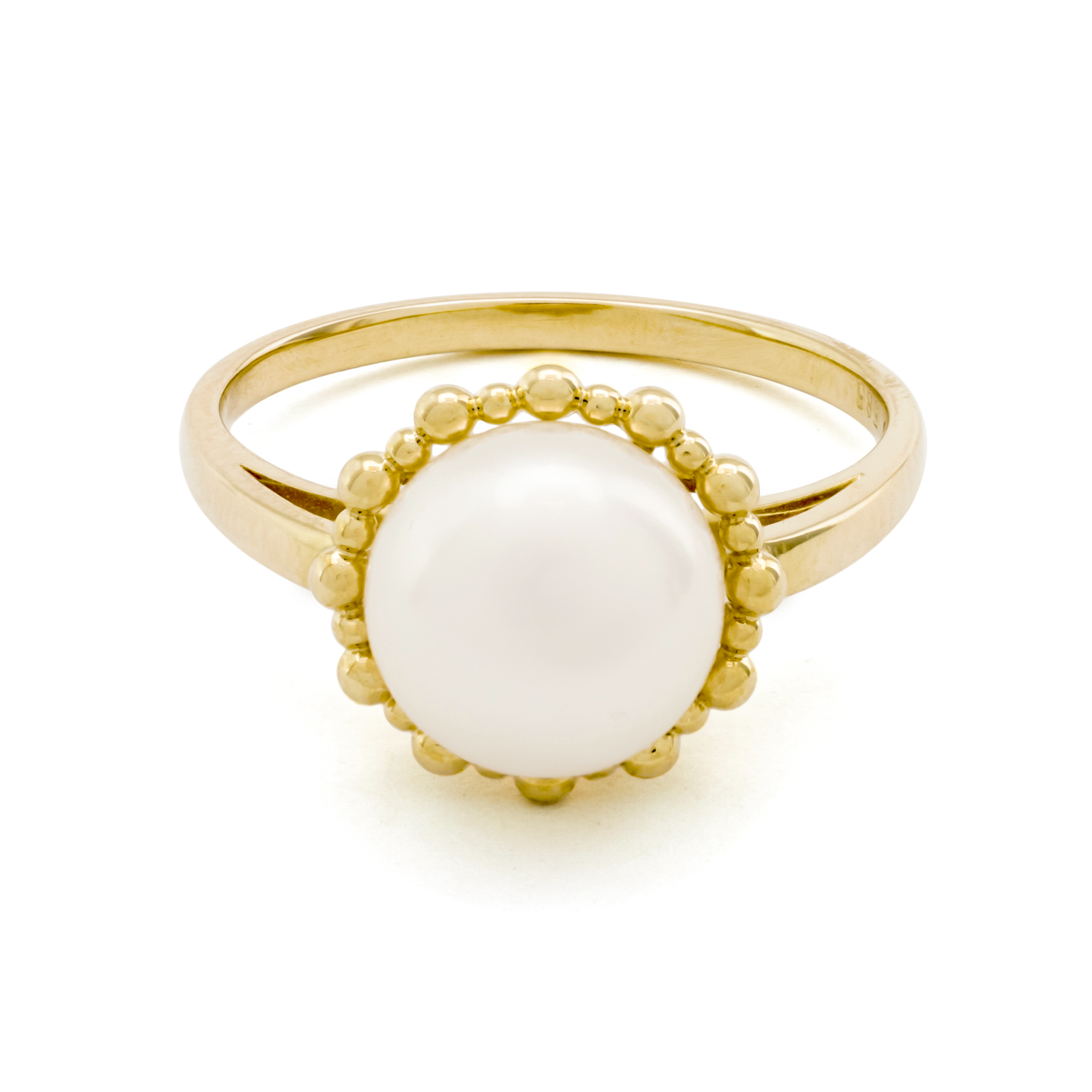 gouden ring, bouton parel+ parelrand mt18