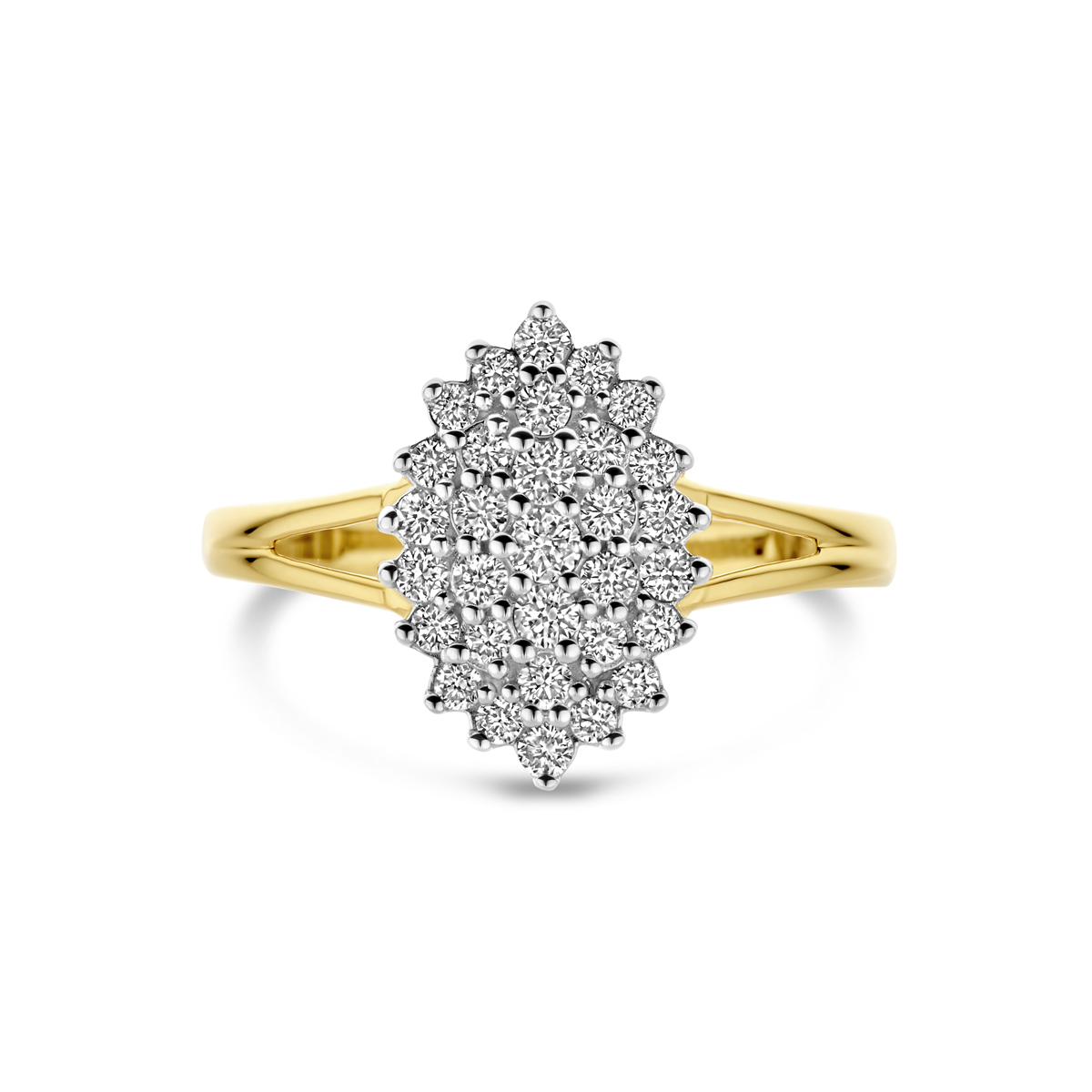 gouden ring, ovaal rozet+ 0.48ct LG diamant mt56
