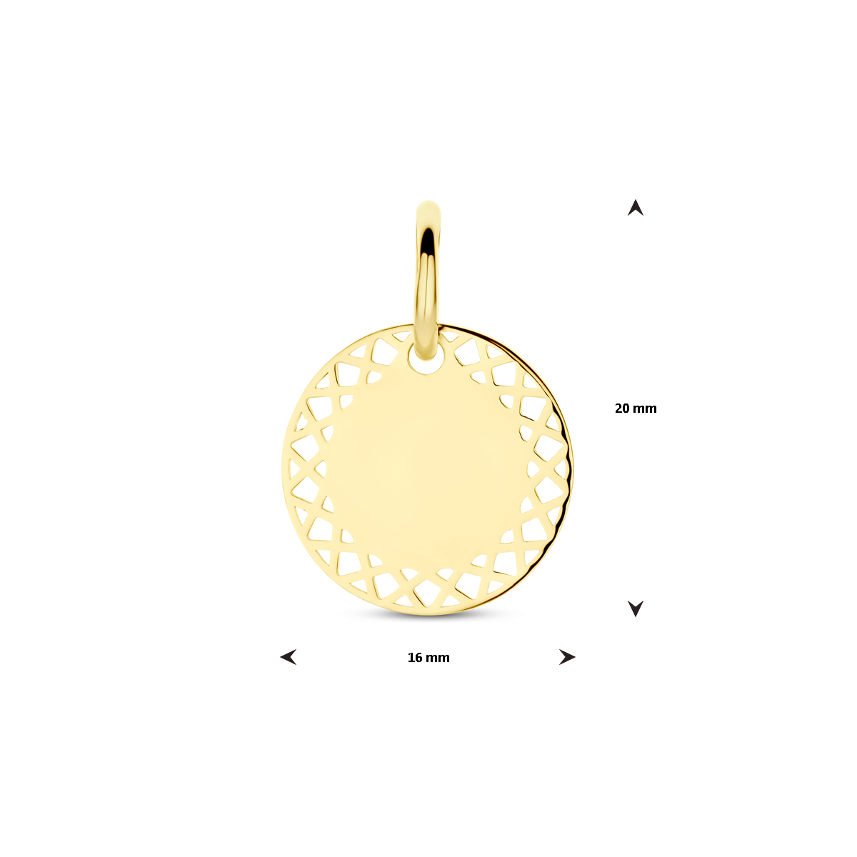 gouden graveerhanger, rond/gewerkt 16mm