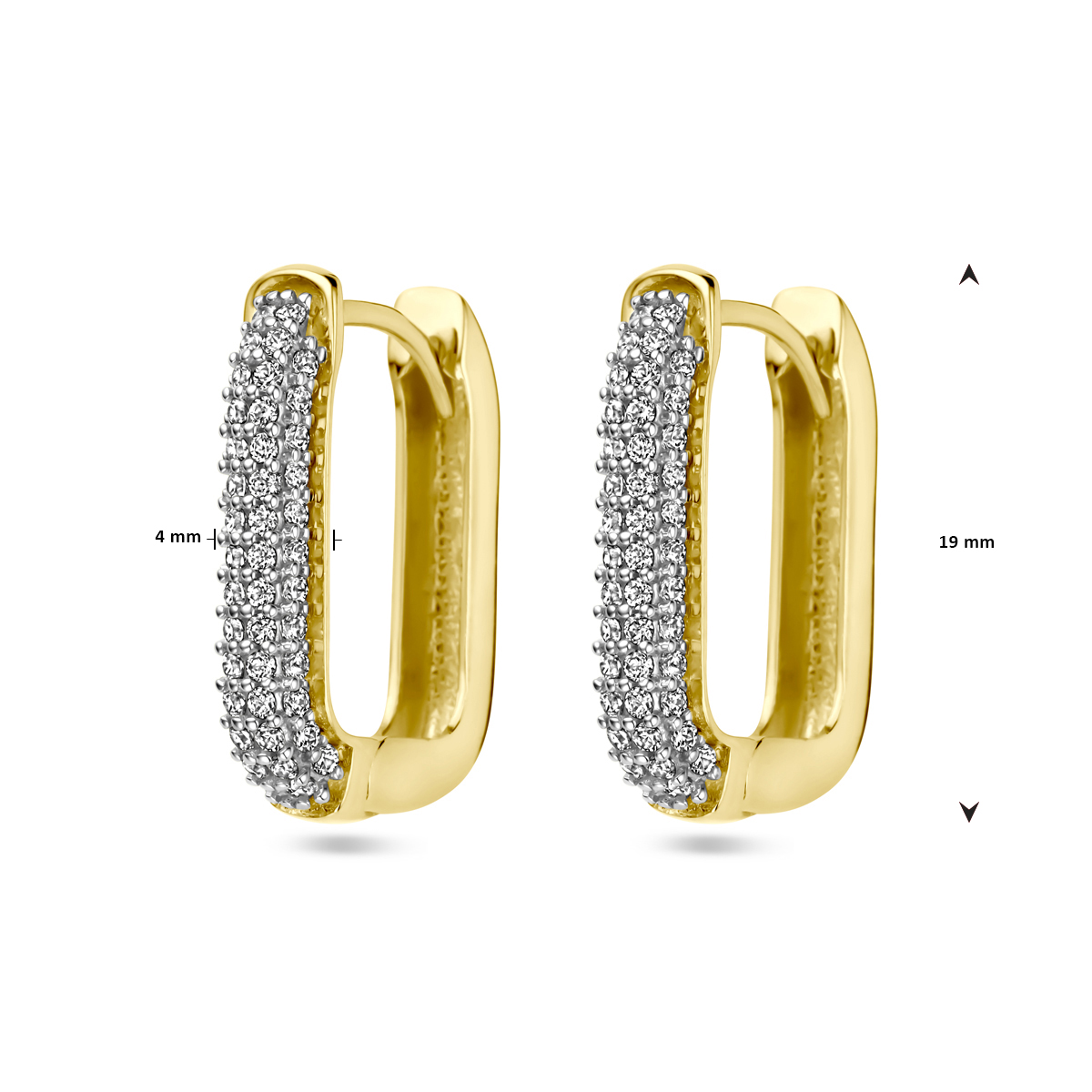 gouden oorringen, ovaal+pave zirconias 19x4mm
