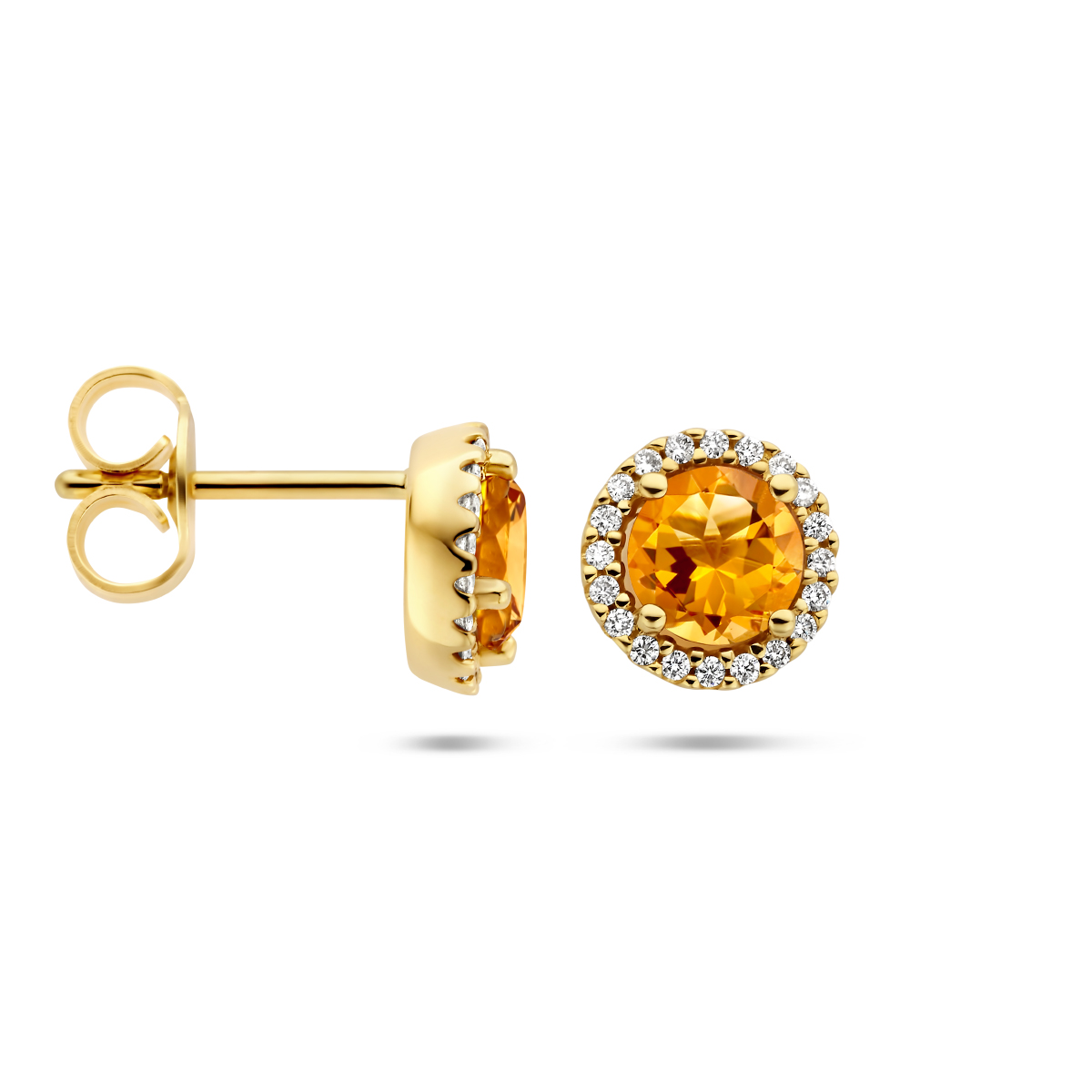 gouden oorstekers, rond met 5mm citrien+ 0.11ct briljant