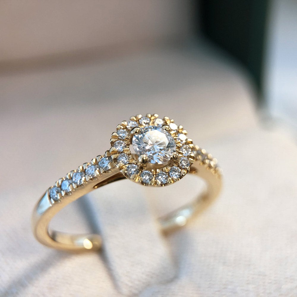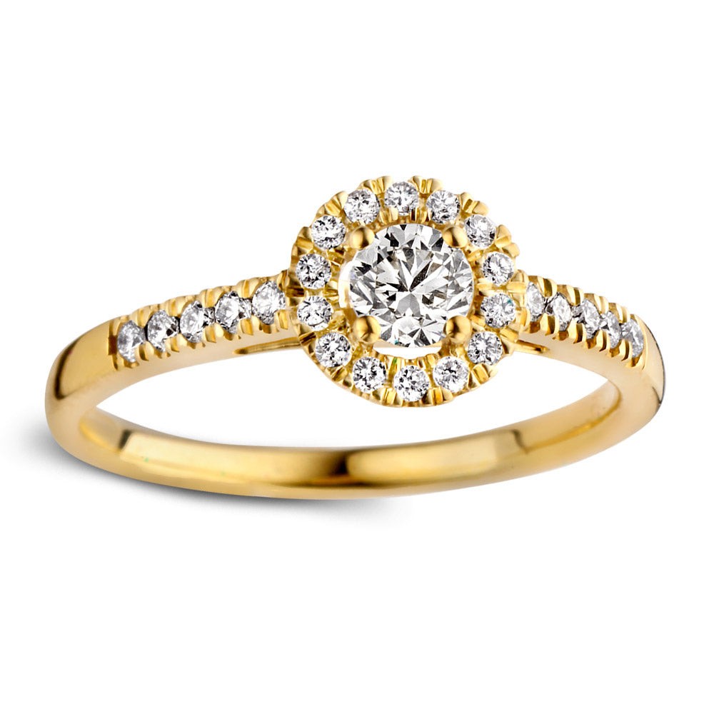 18krt gouden Aurore ring, Emma Royal met 0.50ct MM briljant, mt55