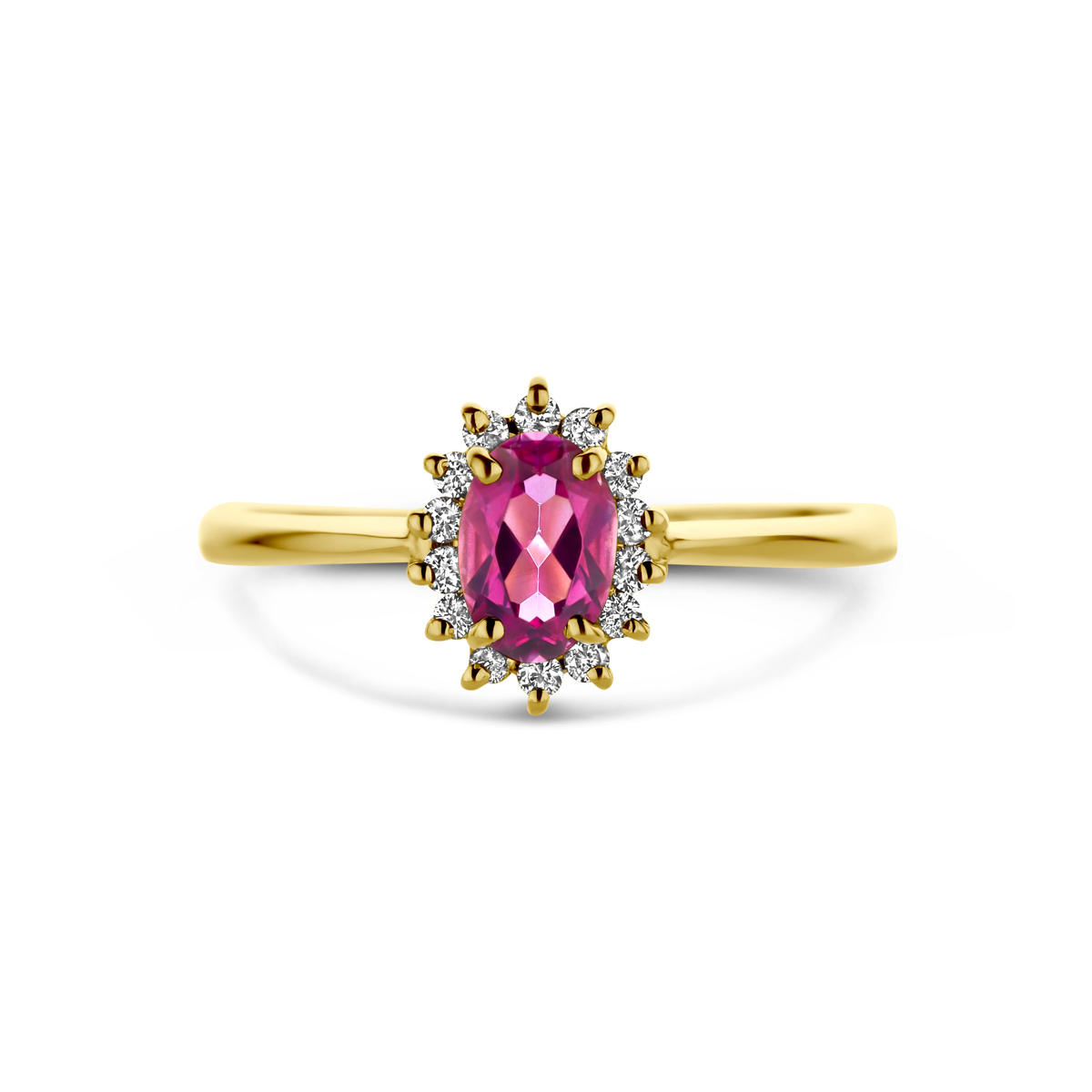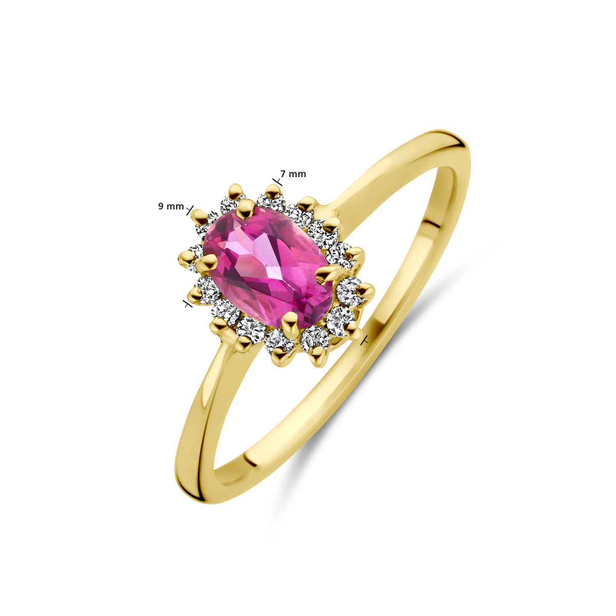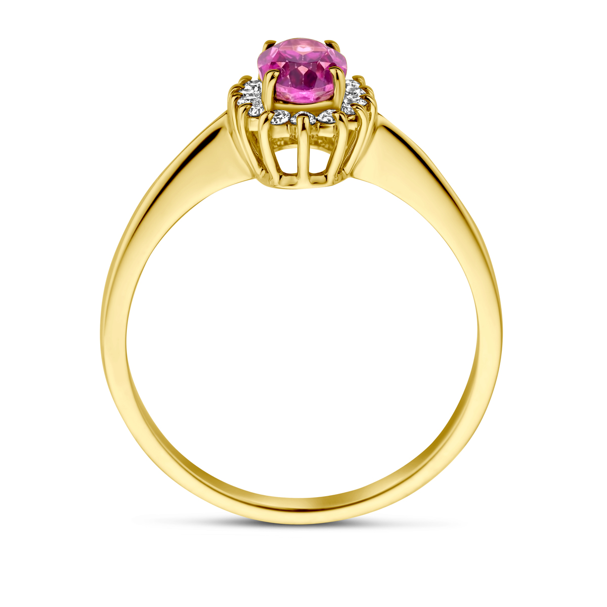 gouden ring met briljant, roze topaas+ 0.11ct mt16,5