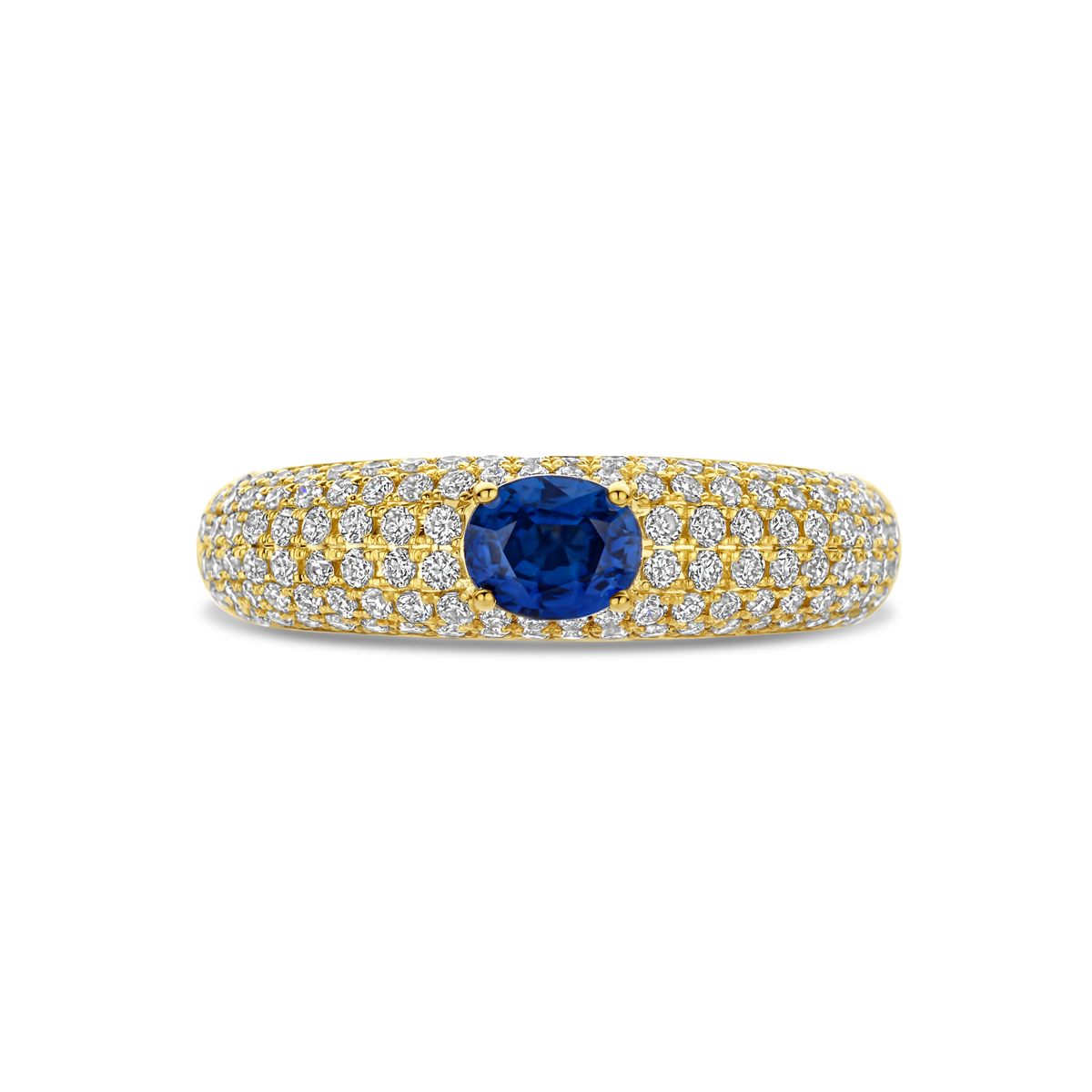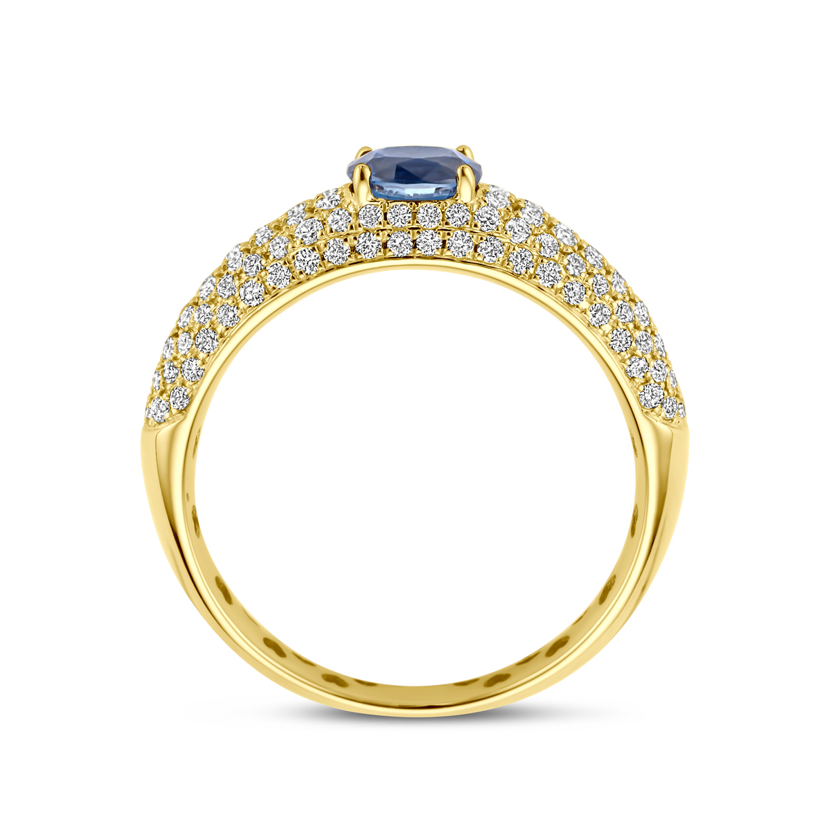gouden ring, saffier 5x4+ 0.65ct briljant mt58