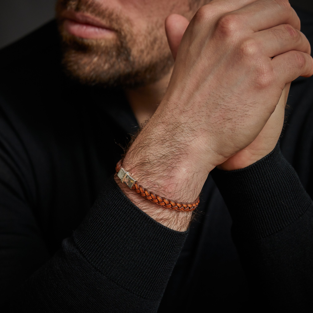 Rebel en Rose armband, Small Braided Raw Cognac M