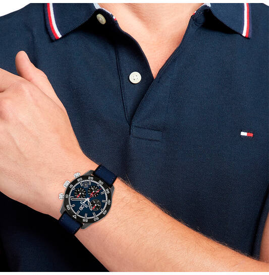 Tommy Hilfiger horloge met kunststof band, TH85 Carbon blauw/zwart