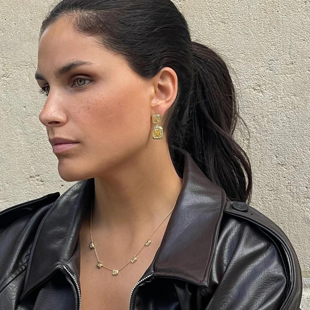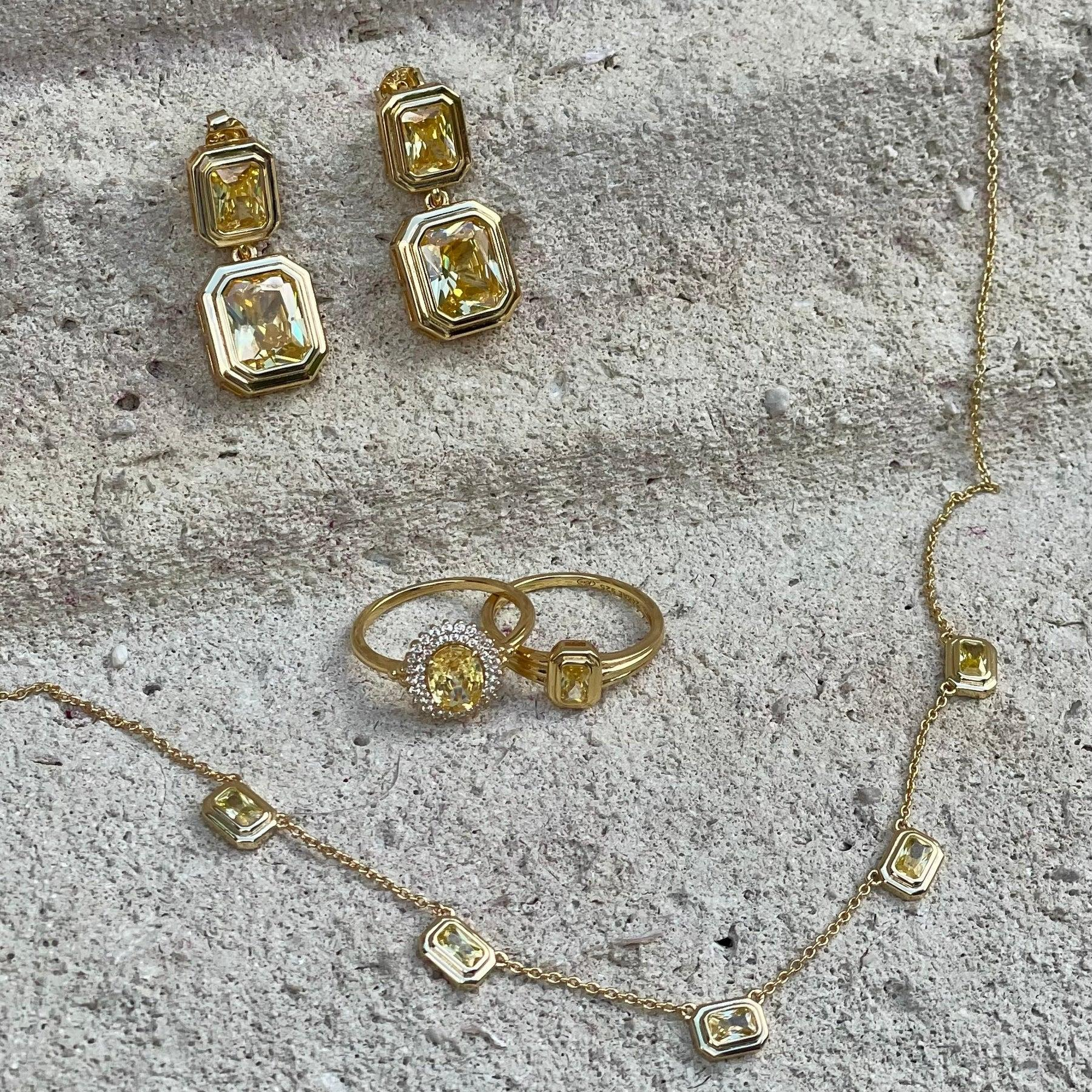zilveren 24Kae oorhangers, verguld rechthoeken+ geel cz