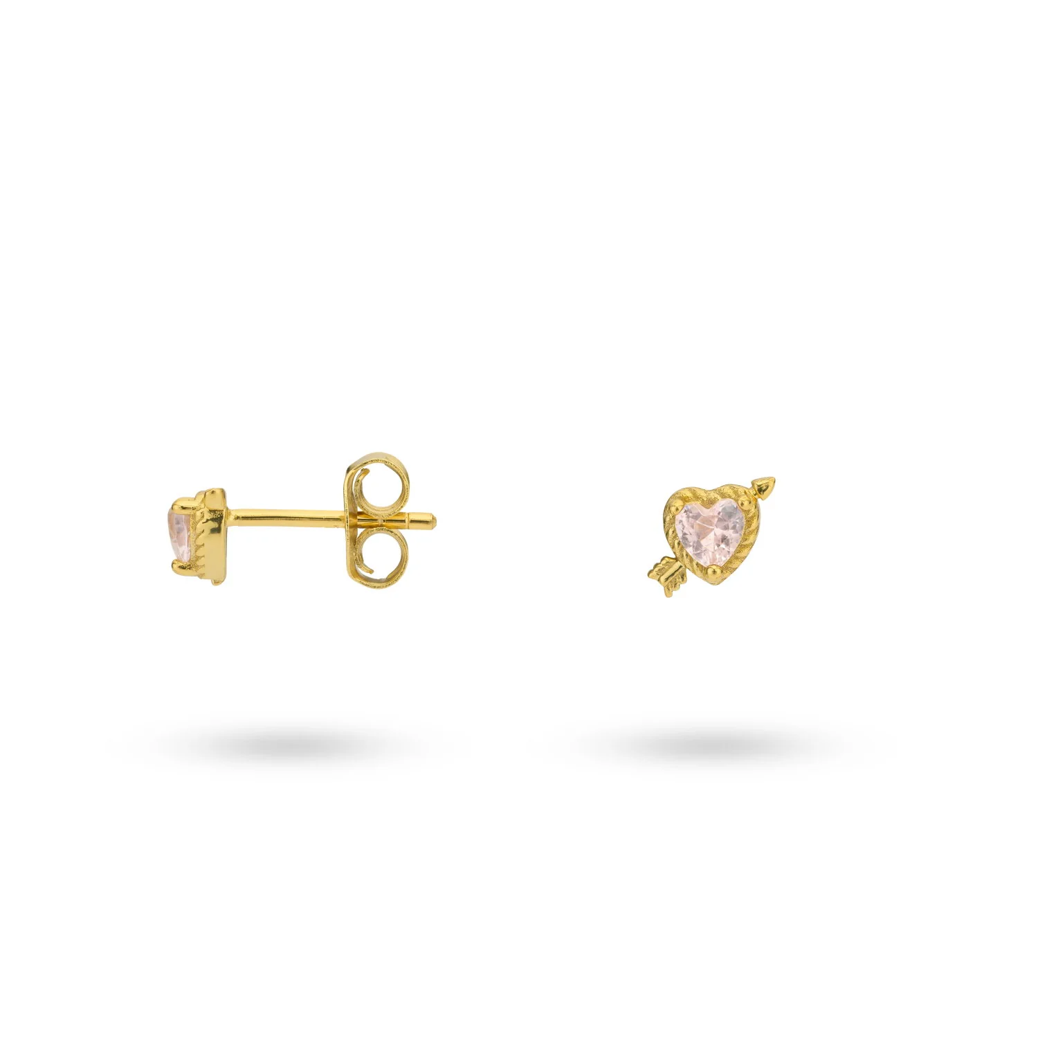 zilveren 24Kae oorstekers, verguld hart+ roze cz
