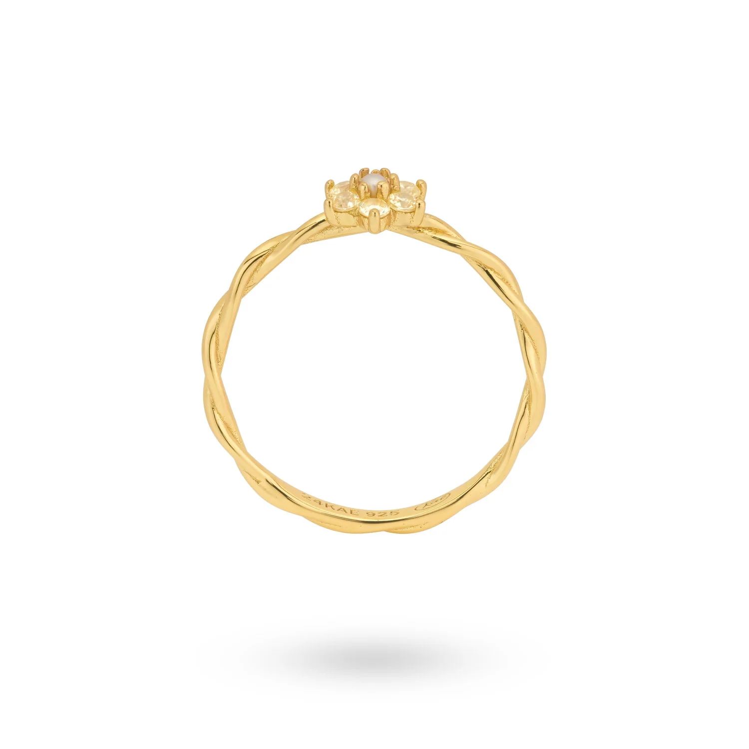 zilveren 24Kae ring, verguld ster cz+ parel mt56