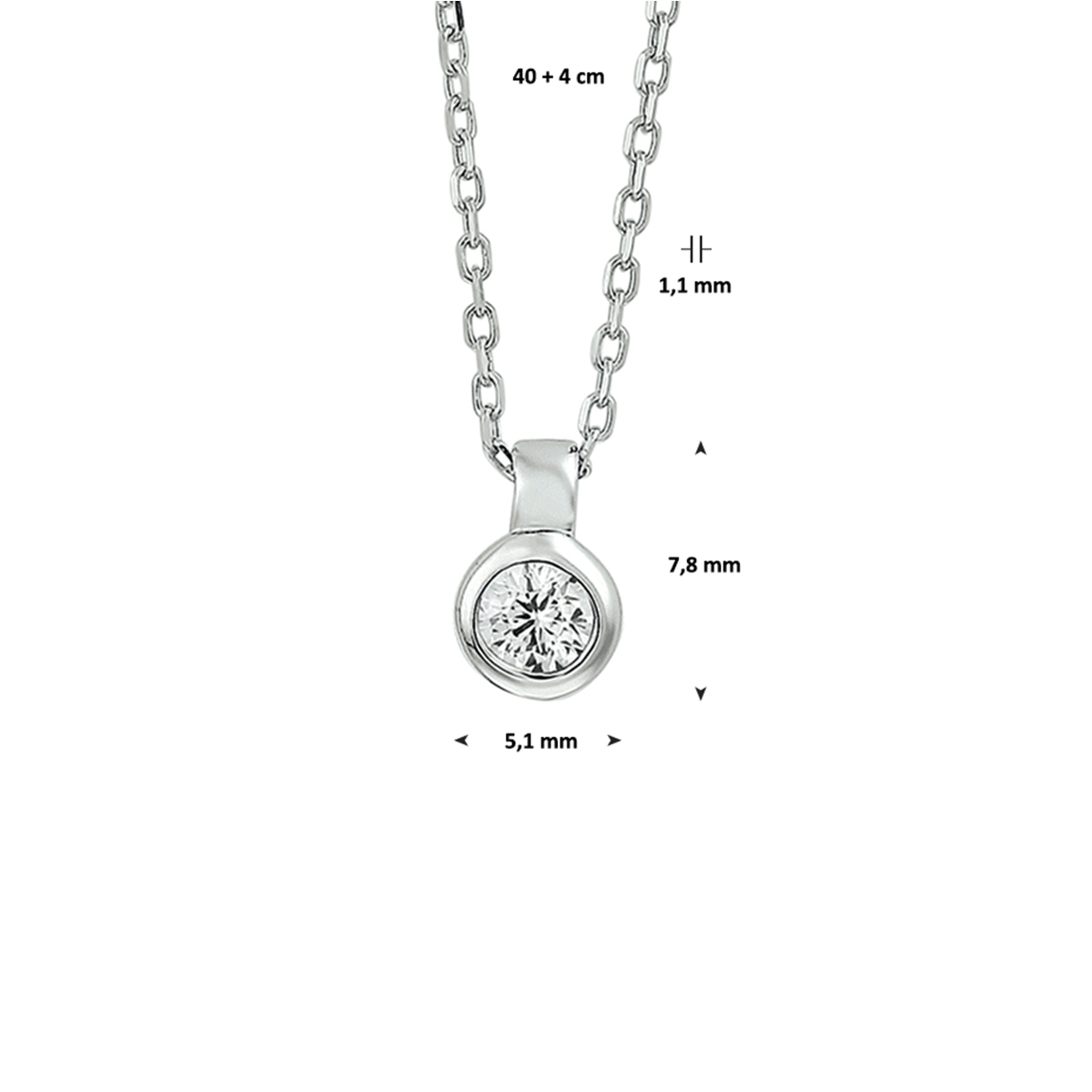 zilveren collier, anker+fijn rondje cz