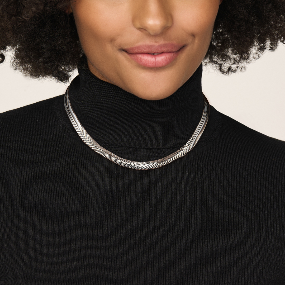 zilveren collier, plat slang 10mm 43cm