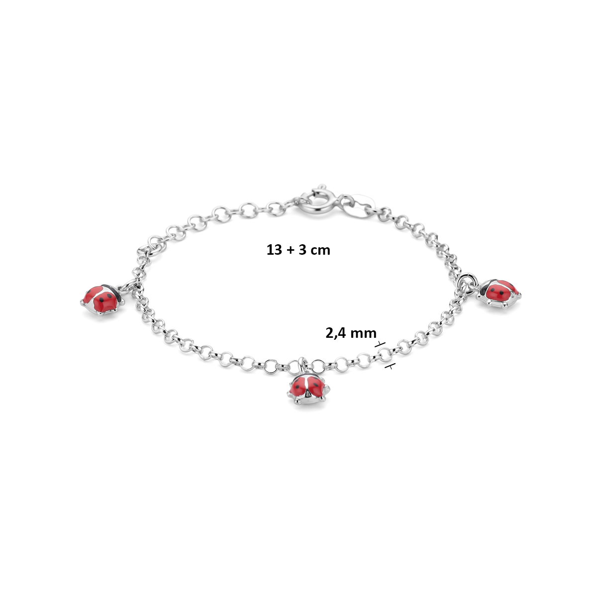 zilveren kinderarmband, 3x lieveheersbeestje 13+3cm