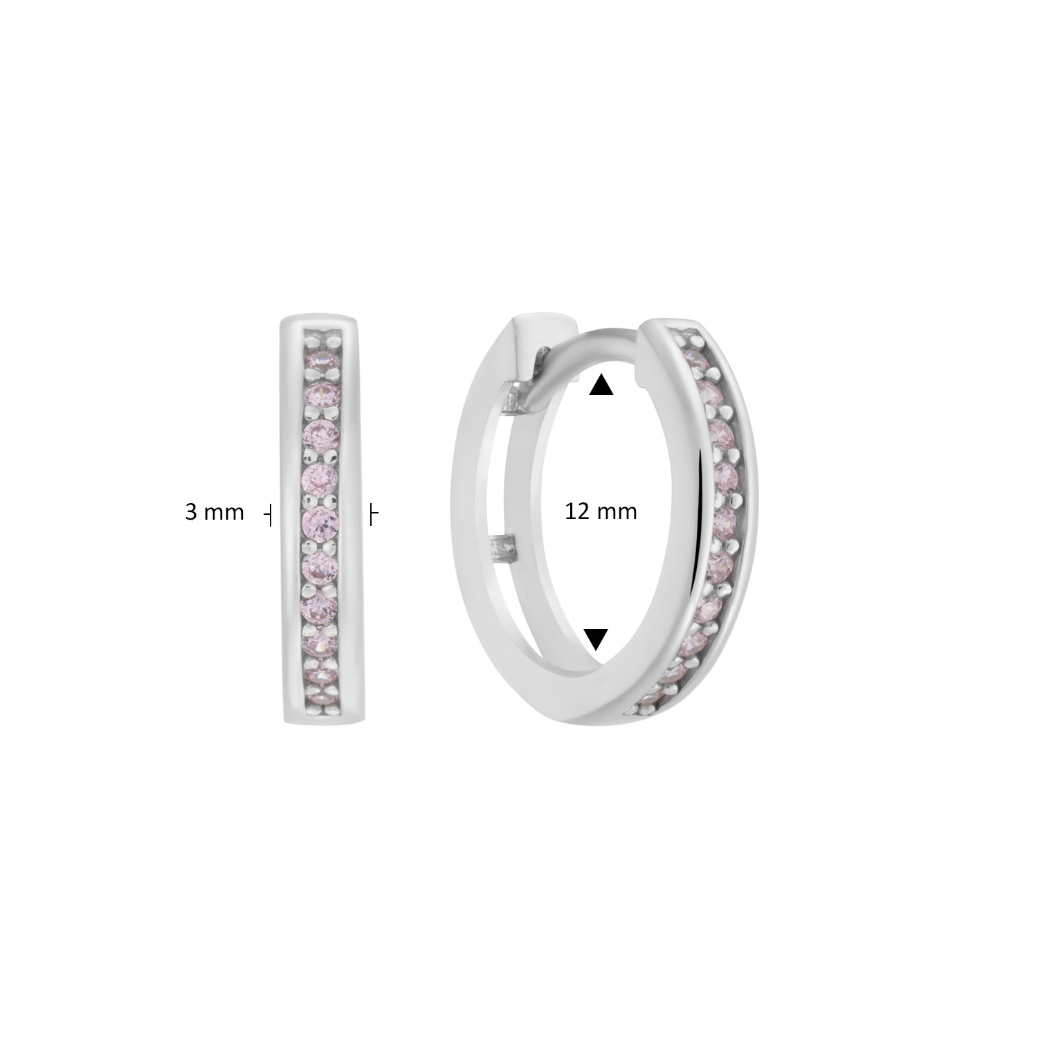 zilveren oorringen, lichtroze zirconias