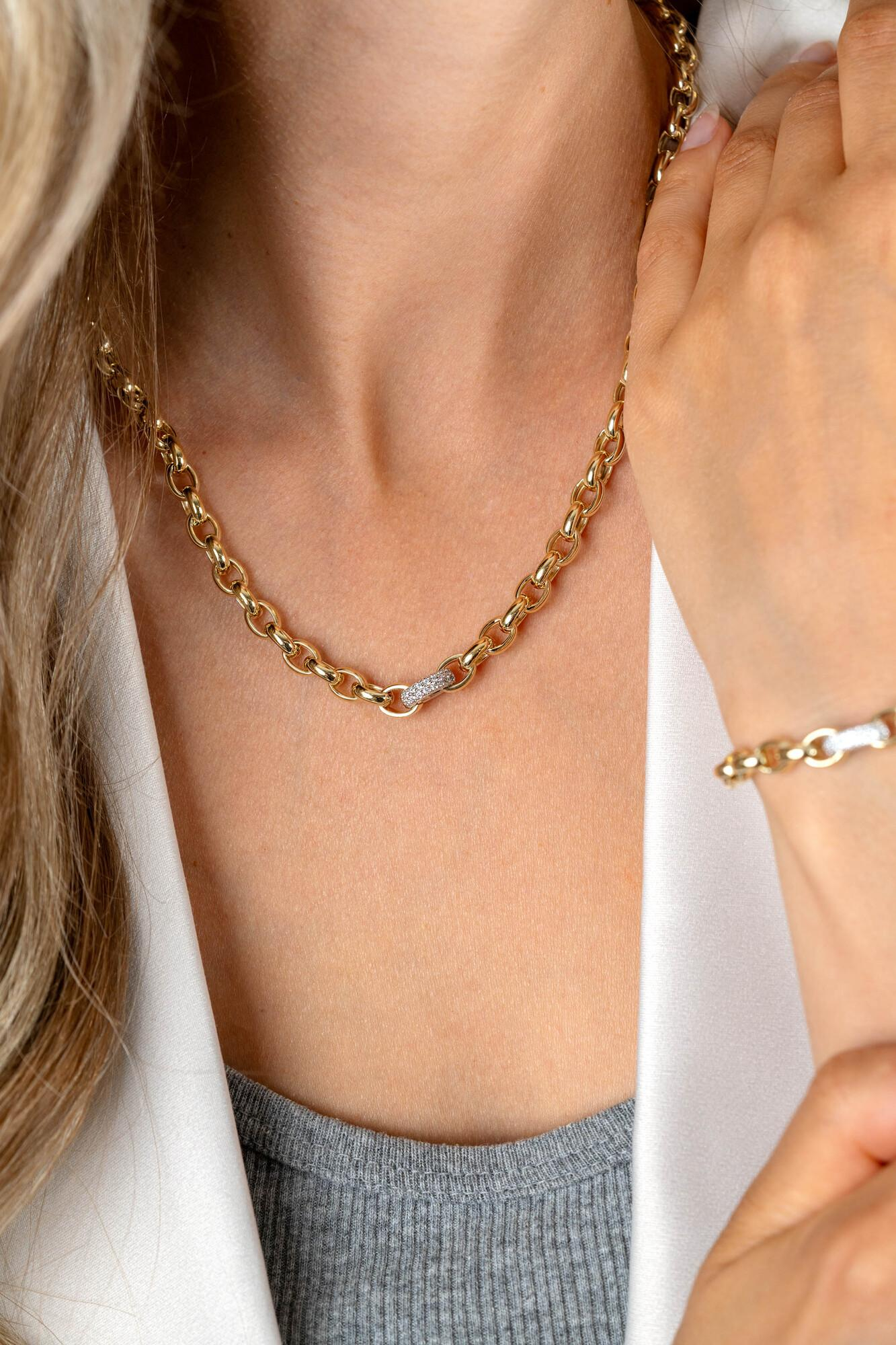 zilveren Zinzi collier, verguld ovaal jasseron+ pave schakel
